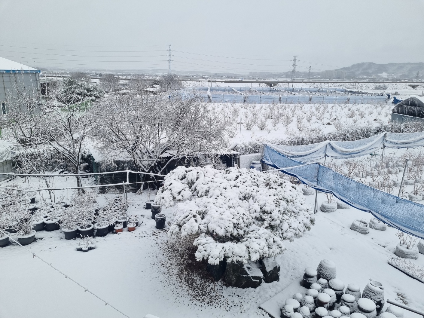 블루베리밭에 눈이 쌓였어요~~~